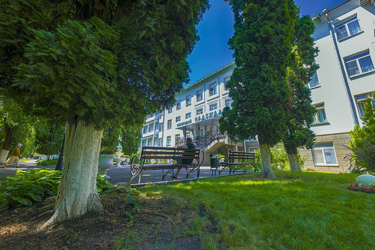В санаторий «Надежда» г. Ессентуки вы можете приехать в любое время года. На территории здравницы будет комфортно находиться и зимой, и летом. Все корпуса, спальные и лечебные, объединены тёплыми переходами. В номерах есть дополнительное отопление на случай похолоданий. За минеральной водой отдыхающим не придётся идти далеко – в шаговой доступности находятся центральные питьевые галереи. Всё в санатории обустроено так, чтобы гости не испытывали дискомфорта на лечении.